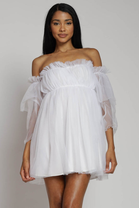Persephone Off Shoulder Tulle Mini Dress