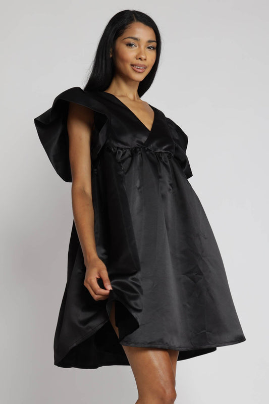 Brinley Satin Ruffle Sleeve Babydoll Dress