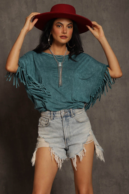 Mattea Mineral Wash Fringe Top
