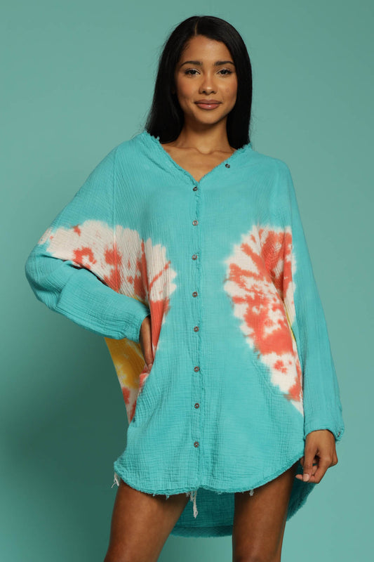 Coastal Tie Dye Button Down Tunic