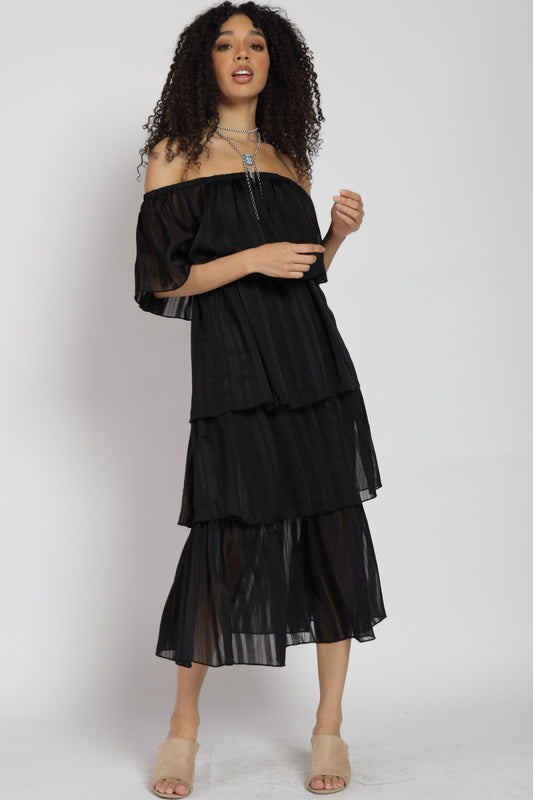 Gabriella Tiered Off Shoulder Midi Dress