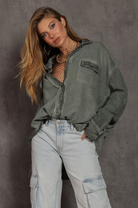 Sloane Mineral Dyed Button Up Shirt