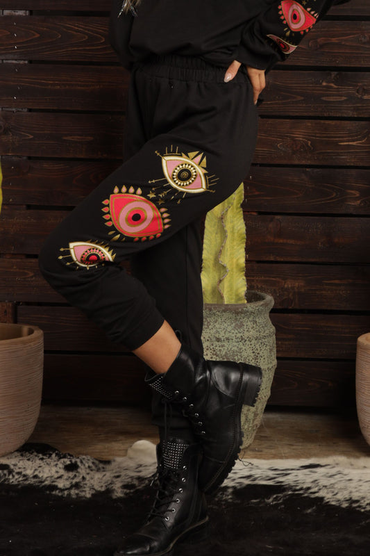 Pink Evil Eyes Printed French Terry Sweatshirts
