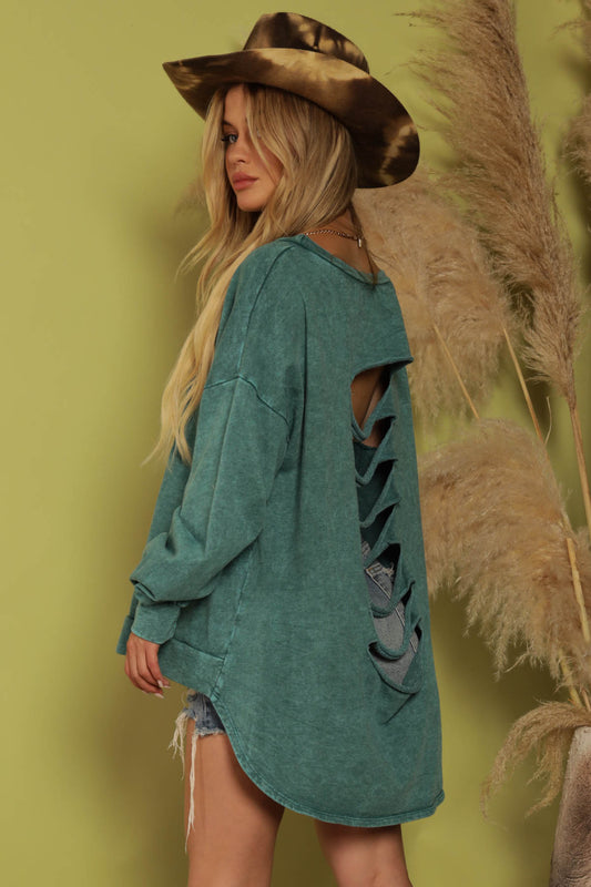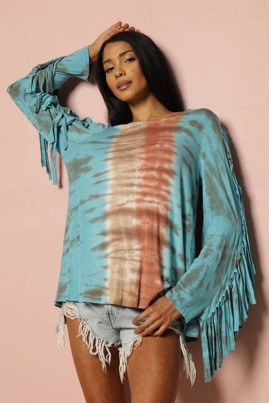 Raelynn Tie Dye Long Sleeve Fringe Top