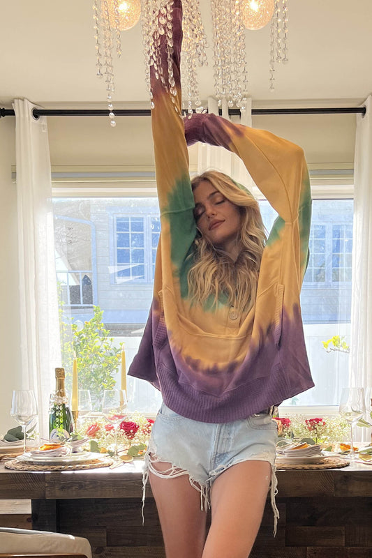 Mardi Gras Tie Dye Hooded Sweatshirts