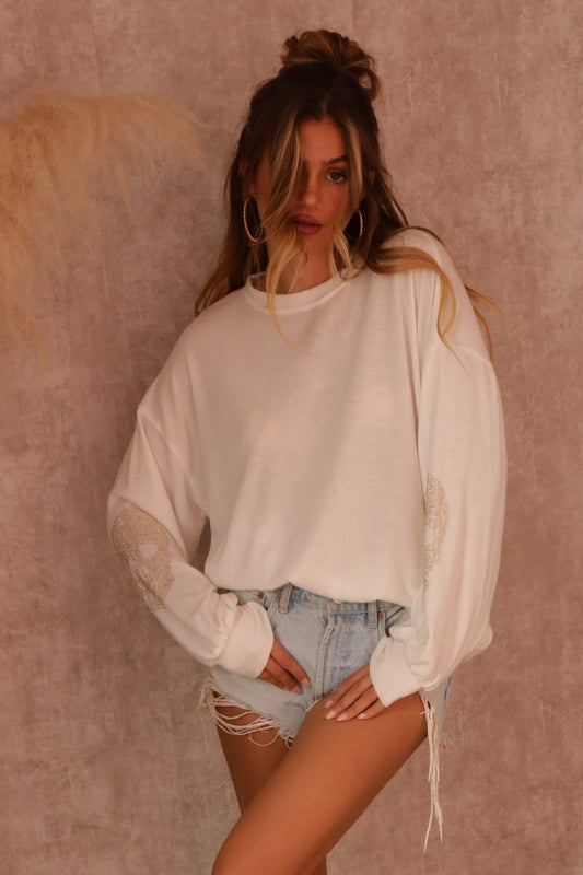 Skull Stud Embellished Soft Brushed Sweatshirts