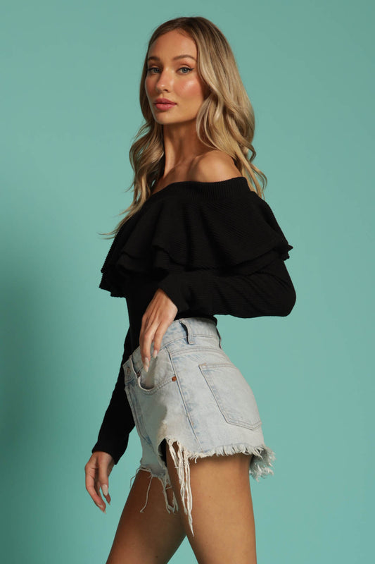 Aubrey Waffle Knit Sequin Long Sleeve Top
